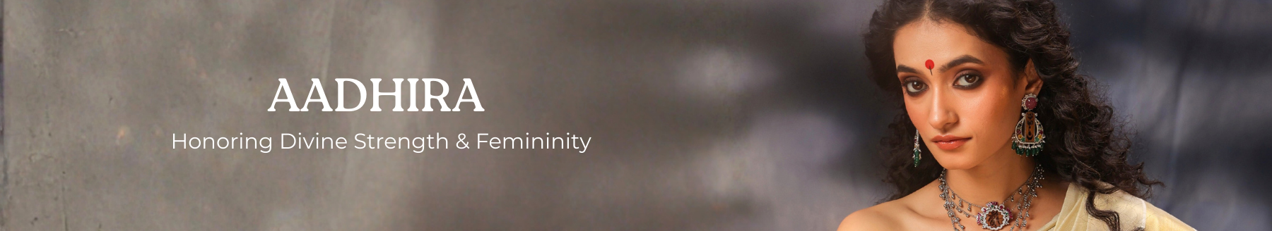 What distinguishes the Aadhira Collection is how it embodies the journey of womanhood in all of its shapes and forms. Each piece of handmade Aadhira jewellery - whether a ring or a necklace, follows a story of struggle, success, and resilience which are all radiatingly beautiful. Aadhira molds the classic beauty of tradition and the power of modern art and reflects the strength of women in all their forms.