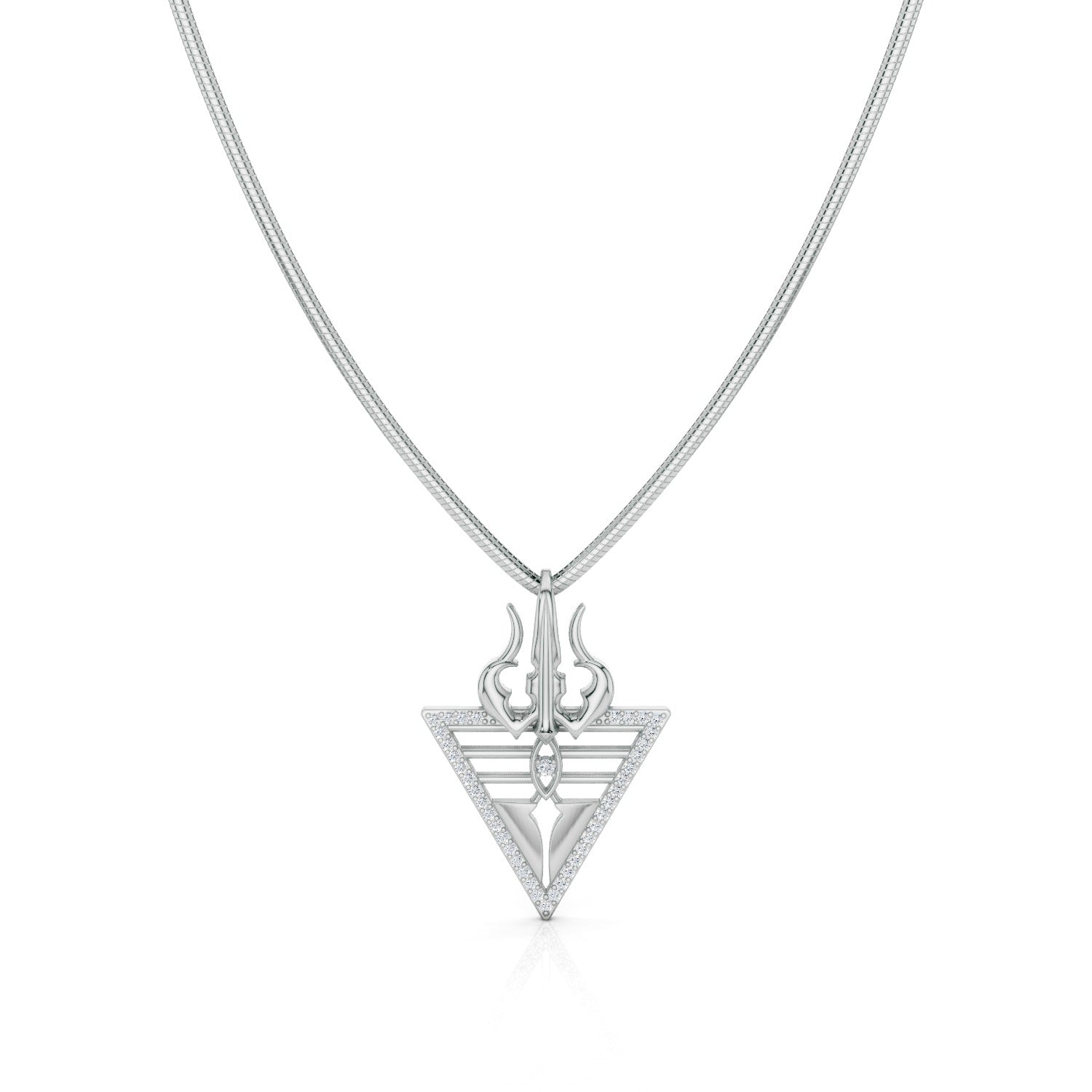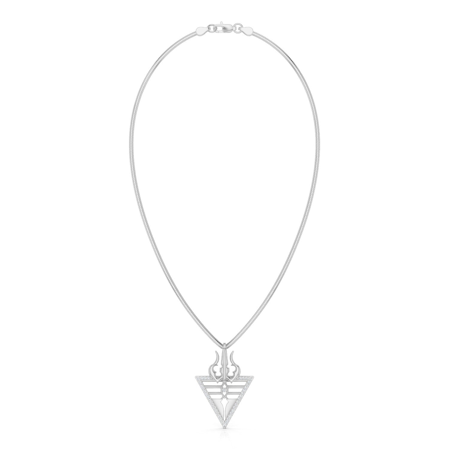 Channel the divine strength of Lord Shiva with this intricately designed trishul and tika-inspired pendant. Made from 925 sterling silver and adorned with a moissanite stone, this oxidized pendant represents balance, spirituality, and inner power. Whether worn as a daily reminder of resilience or as a conversation piece, its modern interpretation of timeless spirituality makes it a must-have. Celebrate your beliefs with a pendant that’s both symbolic and striking.