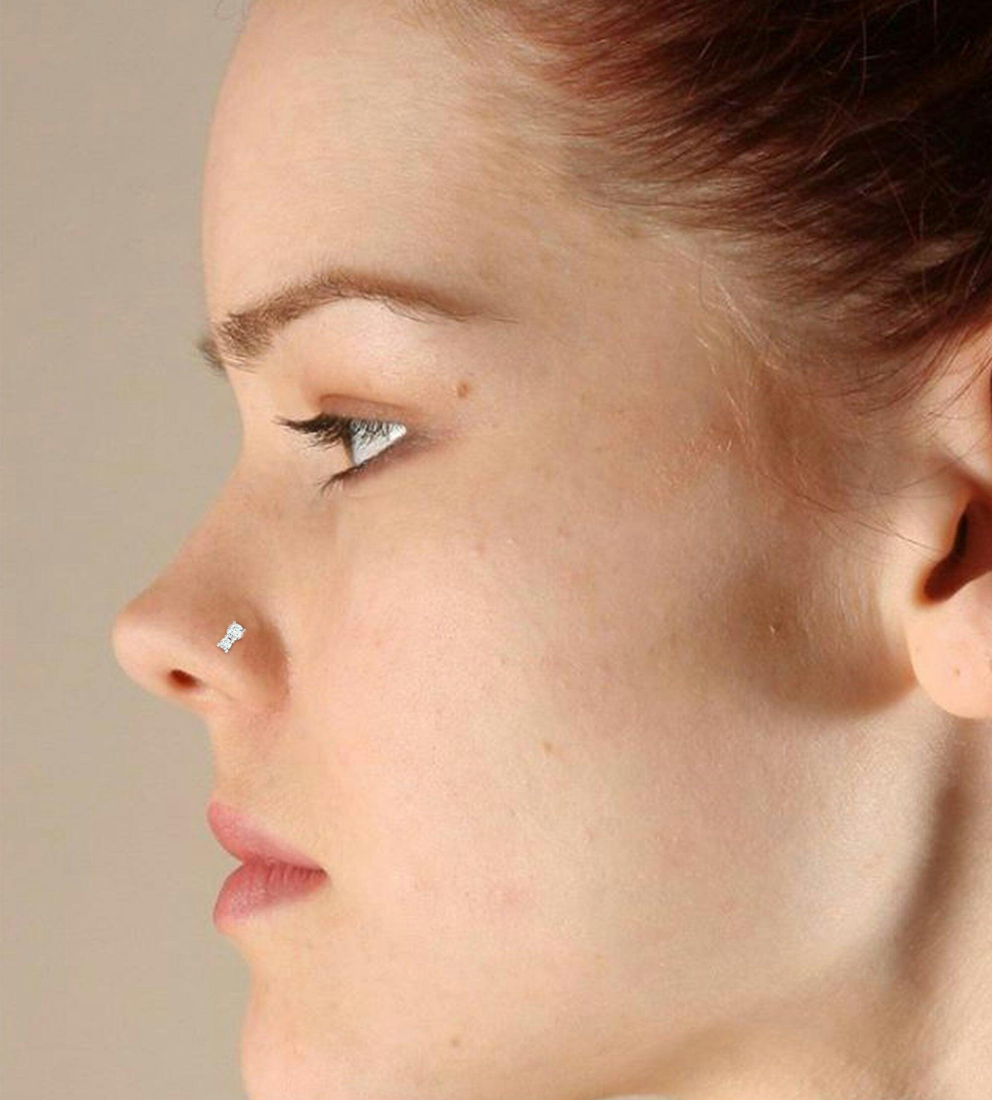 A chic and elegant nose pin adorned with moissanites, ideal for everyday wear.