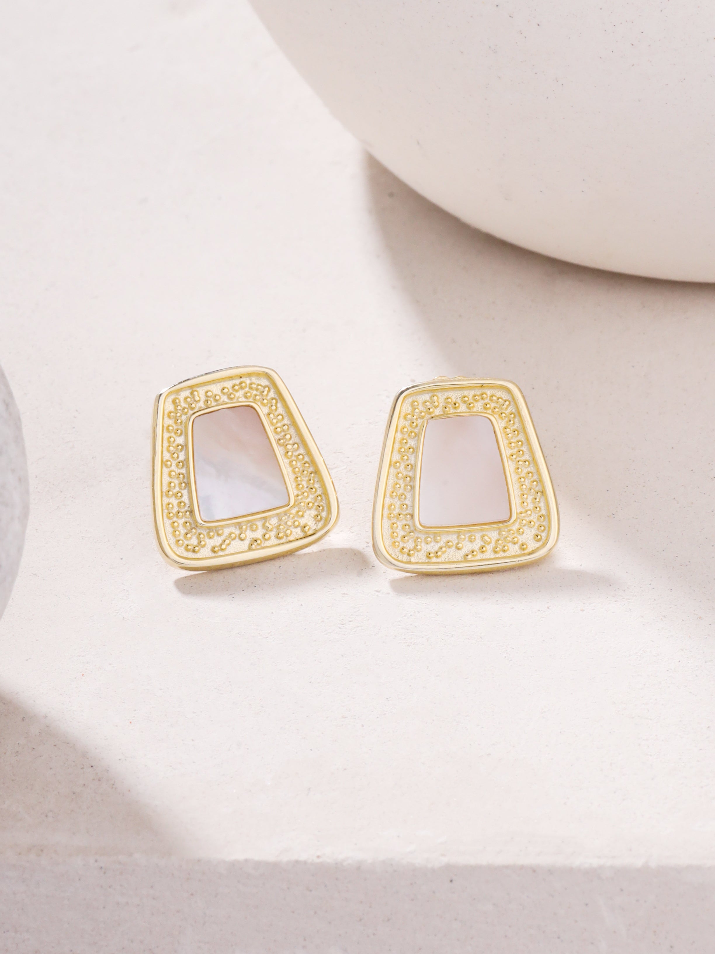 If you wanted a piece of subtle elegance that enraptures the onlookers, Mother of Pearl Stud Earrings Syra Collection 24k Gold is what you must look for. The rugged texture of this Syra perfection balances timeless luxury and modern elegance, making it an accessory fit for the humdrum of everyday life, yet versatile enough to transition effortlessly into an evening of refined sophistication.