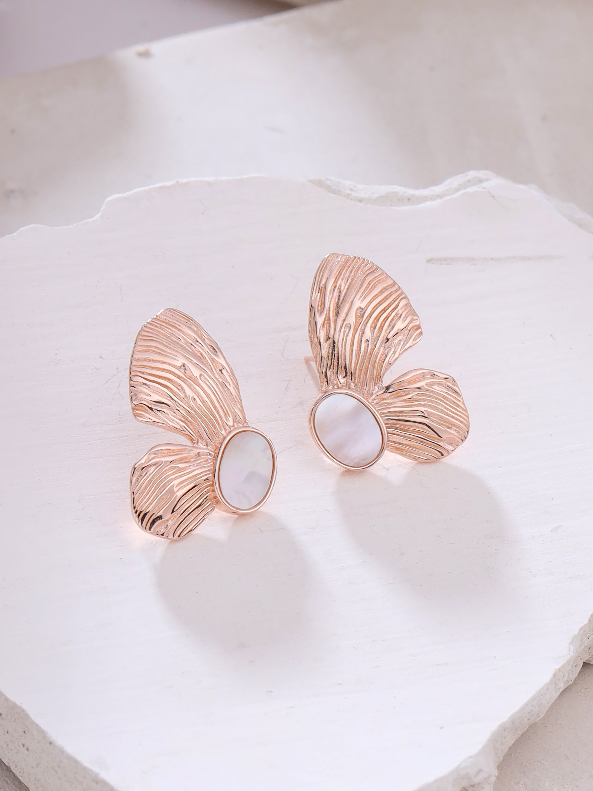 Meadows, with their boundless beauty, are where one might encounter the captivating splendour of a butterfly—nature's very own fairy-like muse. Inspired by these delicate winged wonders, the Rose Gold Butterfly Mother of Pearl Earrings Syra Collectionpromises to be the crowning glory of any ensemble fit for a bold, outgoing woman. Available in rustic rose gold, enchanting gold, and radiant silver, these earrings are the perfect companions to adorn your most bejewelled gowns, ensuring all eyes remain fixed upon you.