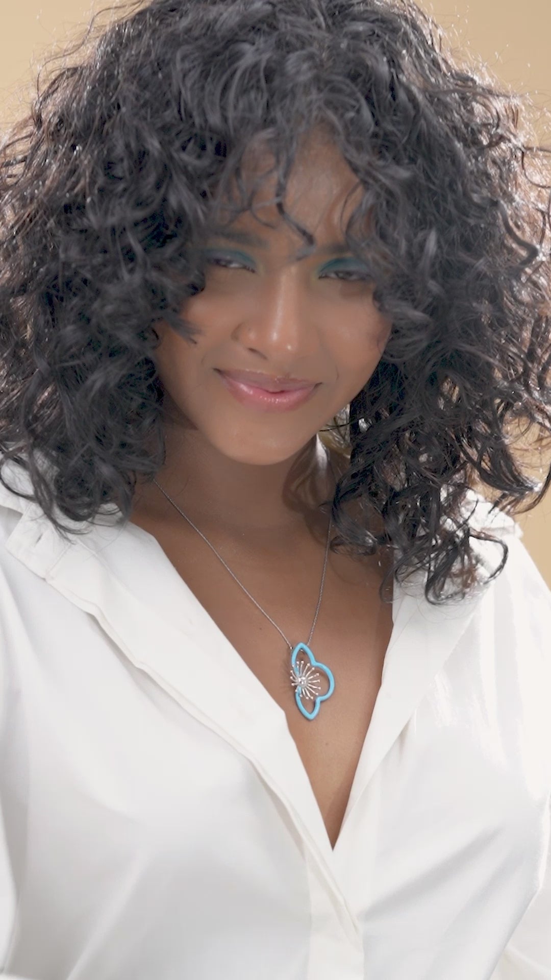 Design: Inspired by abstract flower motifs, this pendant features smooth lines and curves with a soothing pastel blue enamel that evokes a sense of calm.