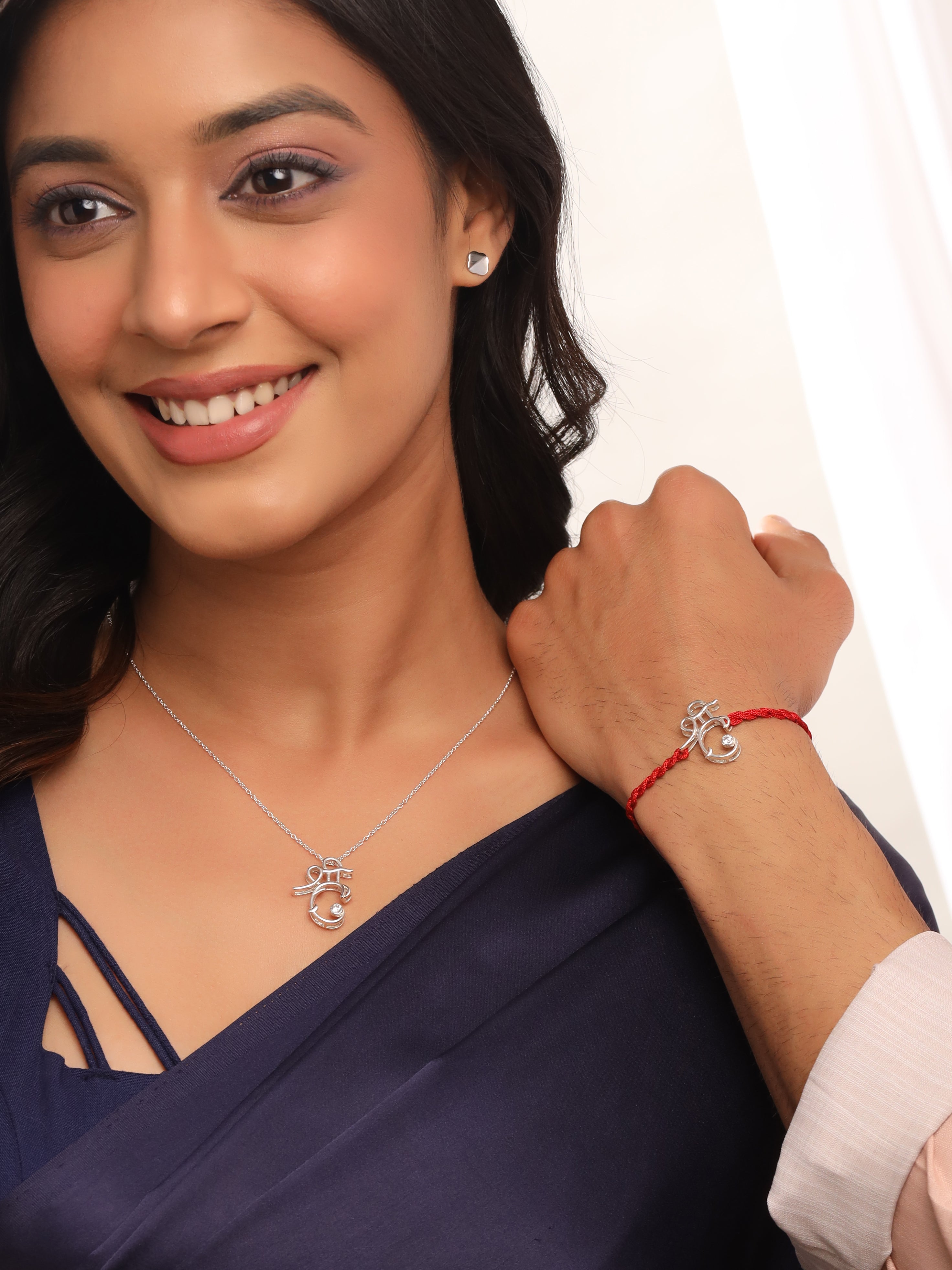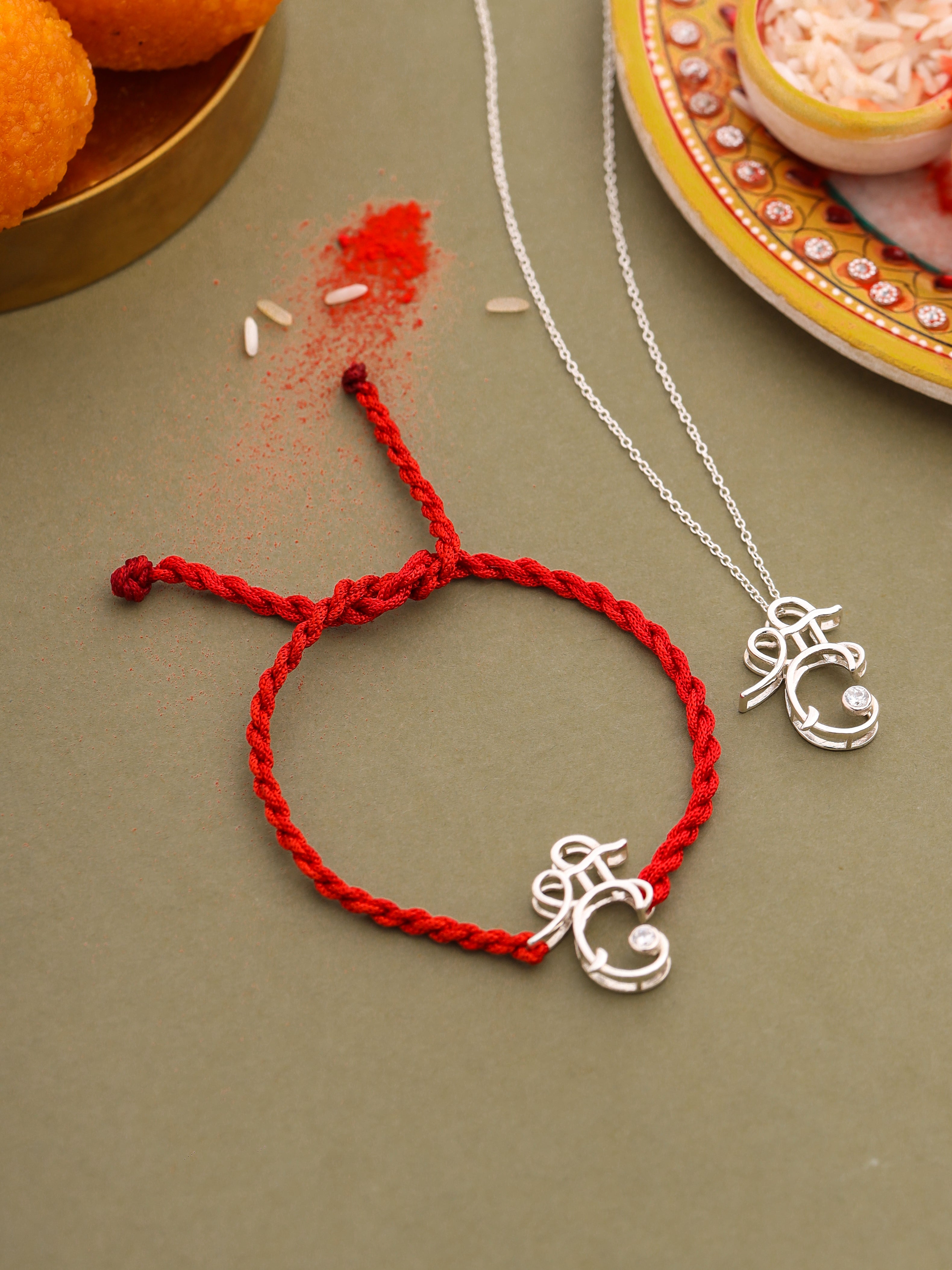 This Rakhi cum pendant serves as a spiritual guardian, perfect for celebrating and blessing the Raksha Bandhan festival.