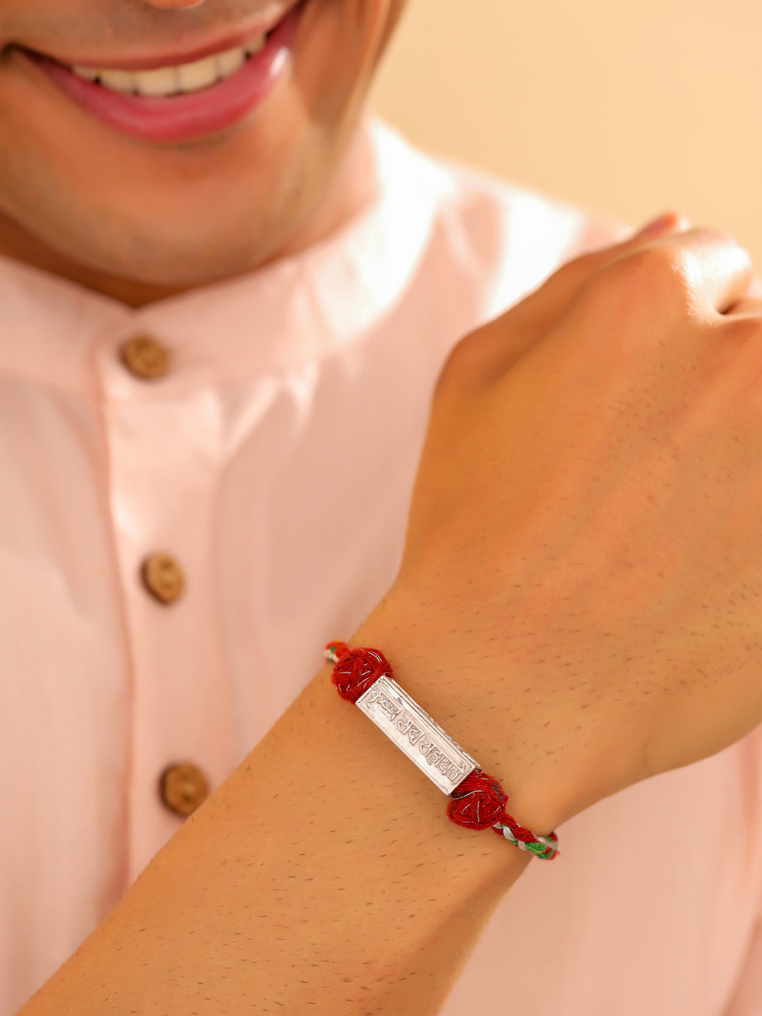 Krishna Blessings Silver Rakhi to honor the divine protection and blessings of Lord Krishna.
