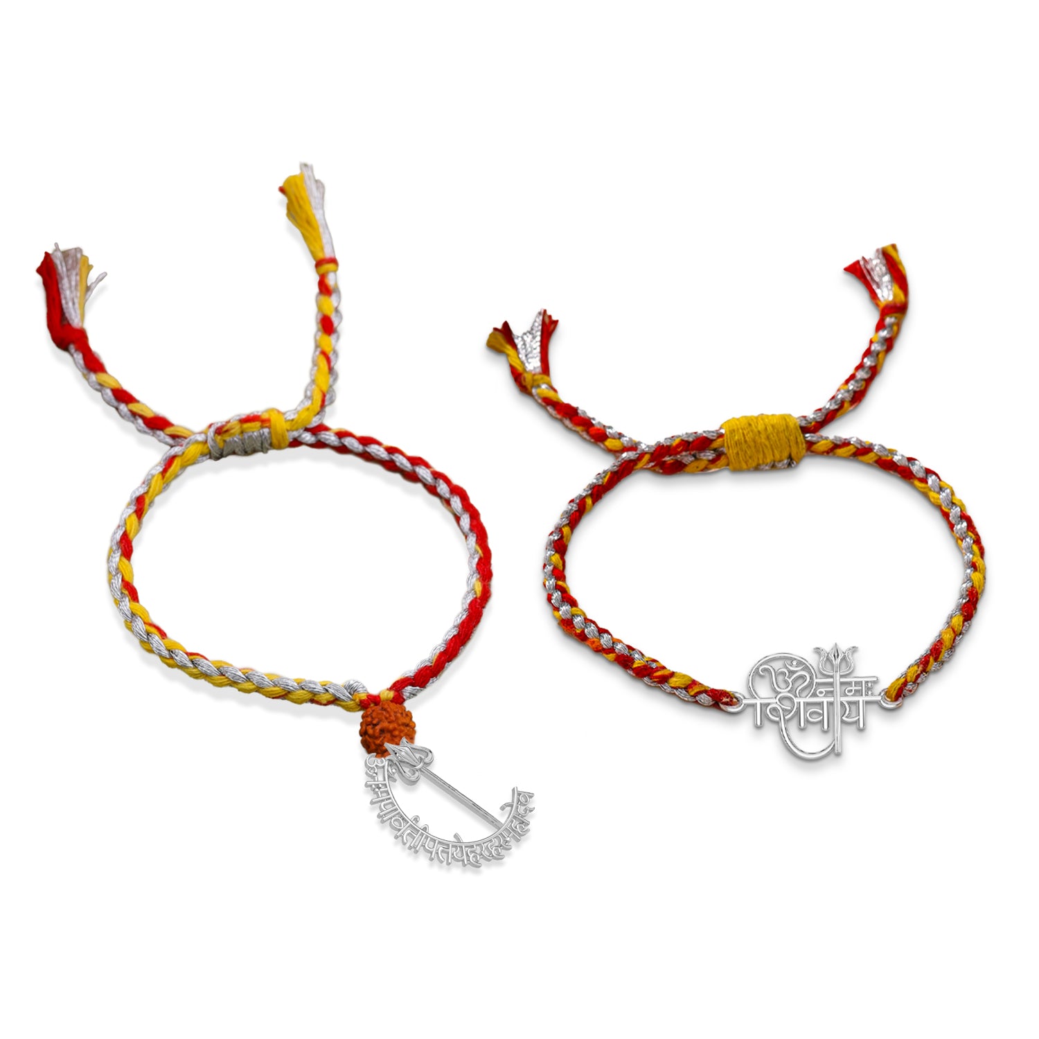 Shiva Mantra Blessings Couple Silver Rakhi to harness the protective and blessing powers of Lord Shiva.
