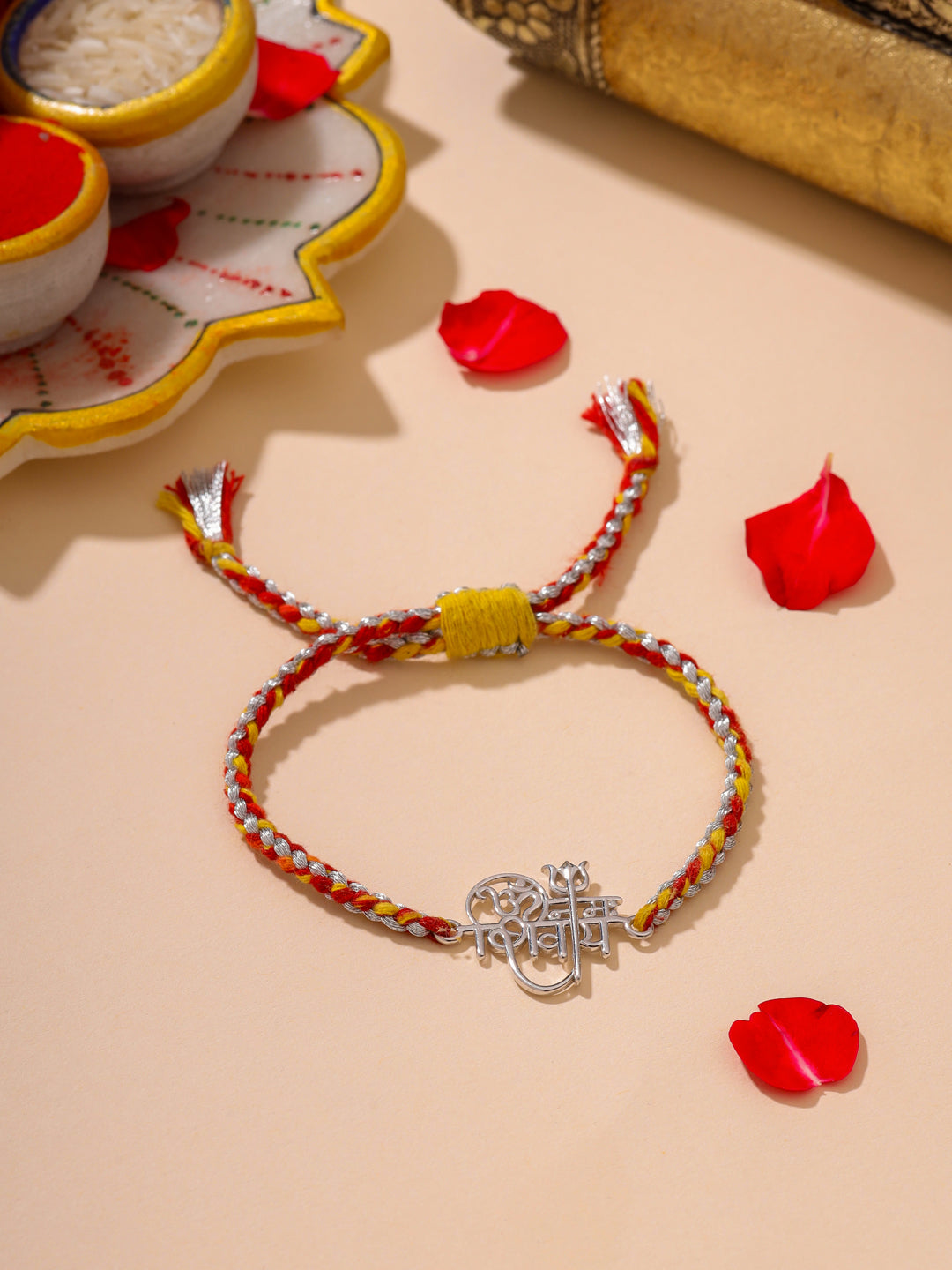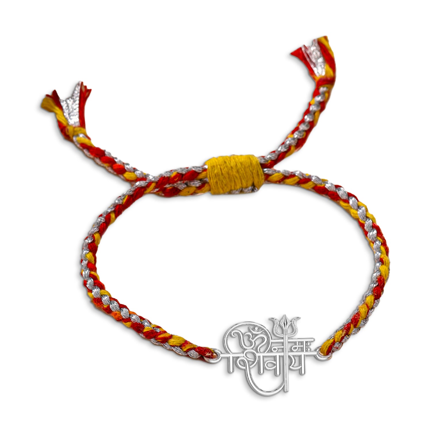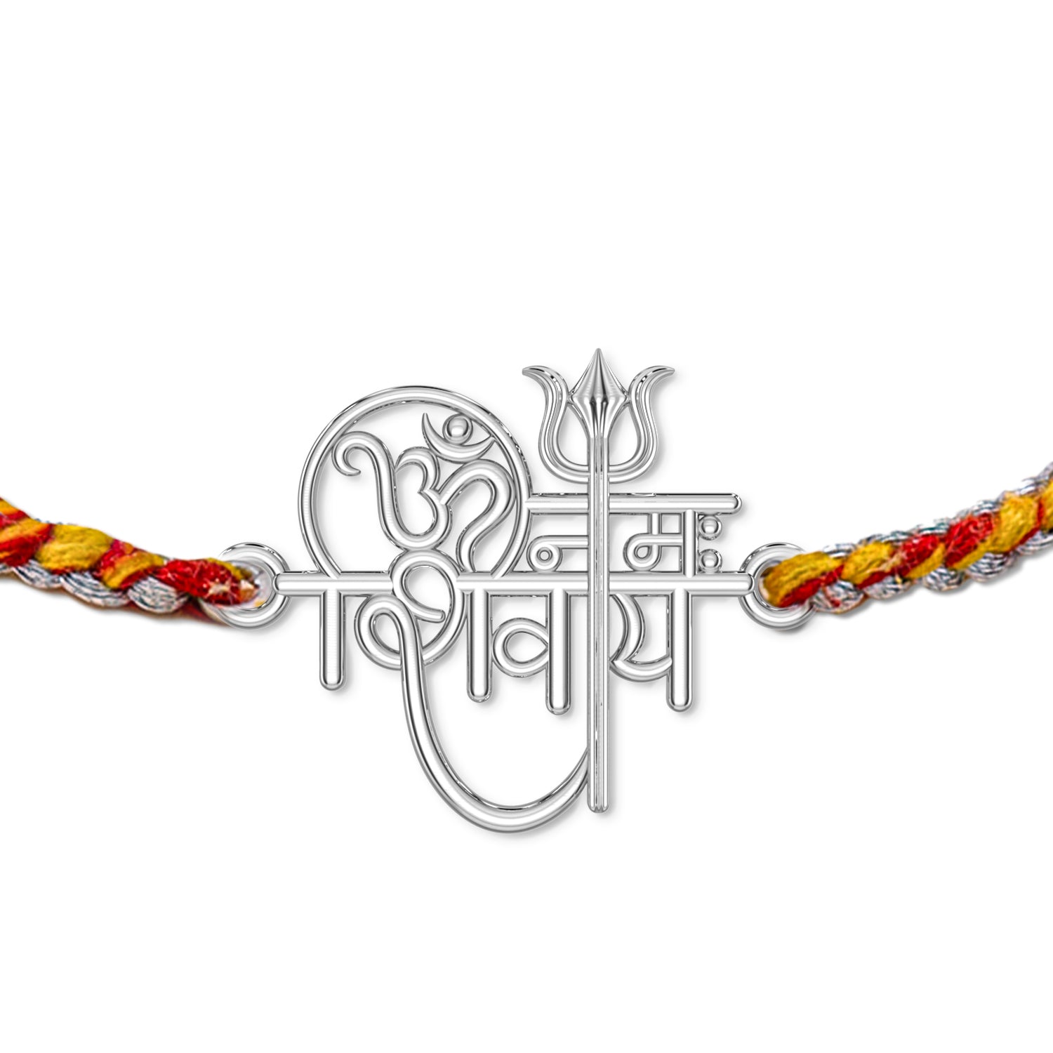 Shiva Trishul Mantra Silver Rakhi to invoke the divine protection and blessings of Lord Shiva.