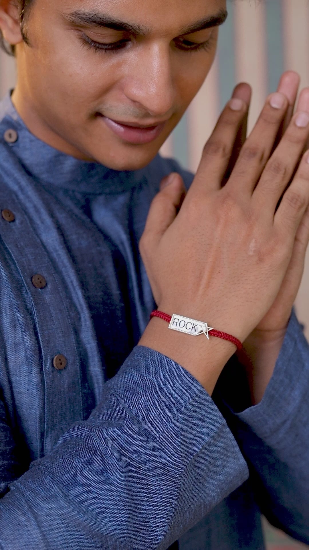 Honour the spirit of a true RockStar bond with our RockStar Wire Twist Rakhi. Crafted with pure 925 sterling silver, this unique Rakhi features a captivating design with a twist wire pattern, symbolizing vibrant energy and individuality. The Rakhi celebrates the goodness of the festival, symbolizing the strong bond and everlasting love shared between a brother and sister. Let this Rakhi shine bright, igniting the joy and harmony of the Rakhi festival.