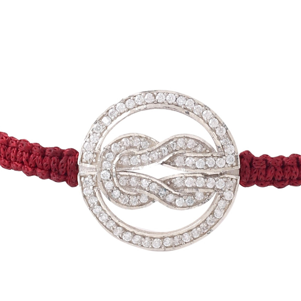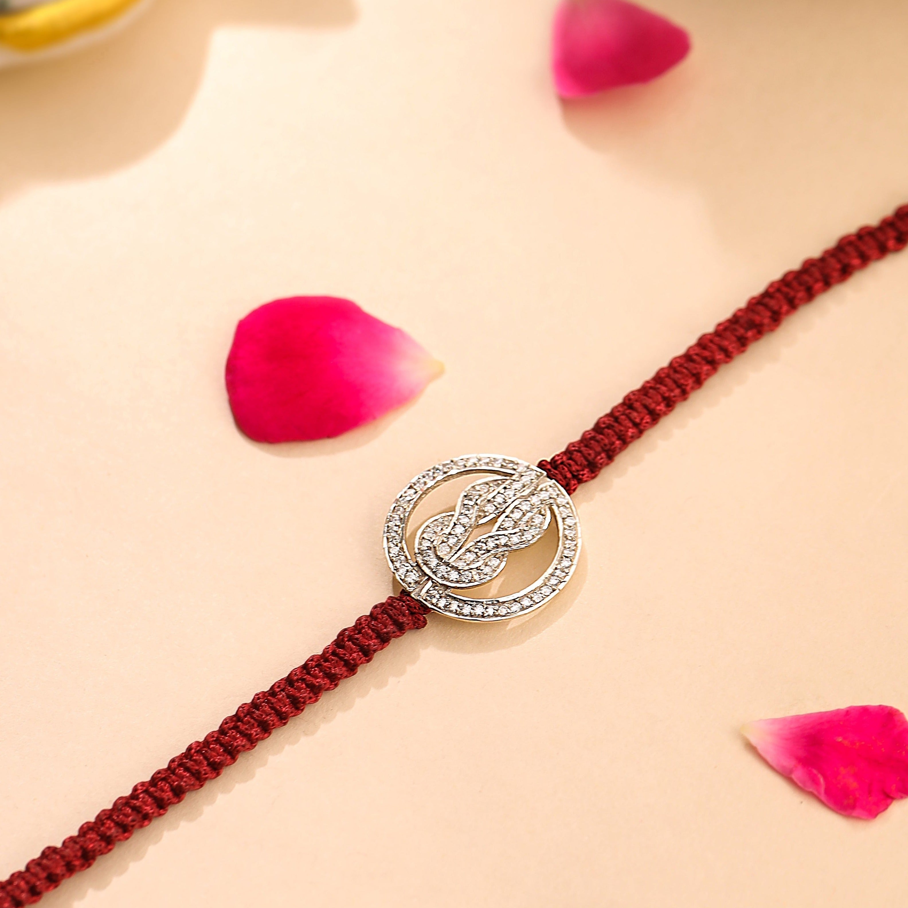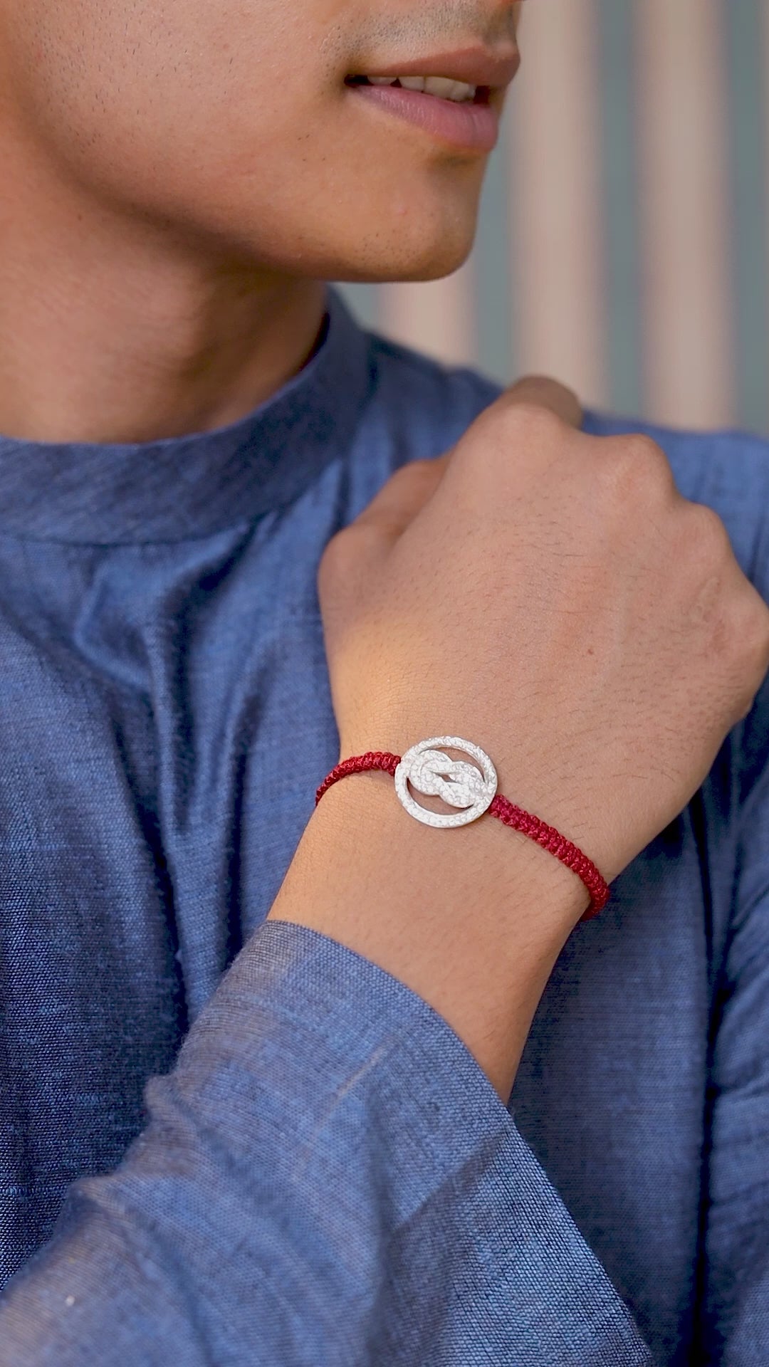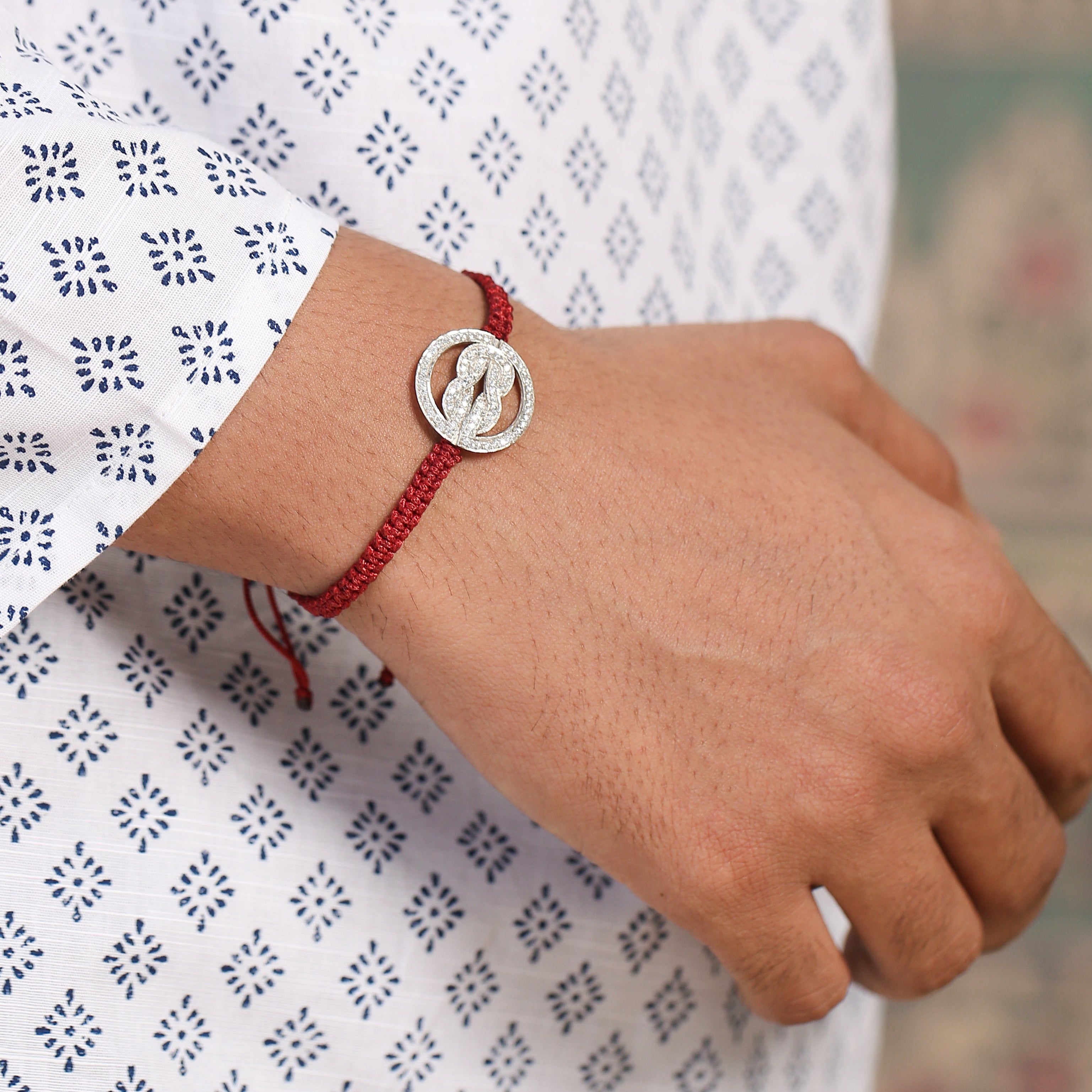 Our Sacred Stone Knot Rakhi is the perfect symbol to celebrate the timeless bond between the siblings. Crafted with pure 925 sterling silver, this Rakhi showcases a beautifully designed knot in a circular pattern, symbolizing the unbreakable connection between a brother and sister. The centre is adorned with a stunning stone, representing love and blessings. This Rakhi embodies the goodness of the festival, radiating love, protection, and lifelong bond shared during the auspicious occasion of Rakhi.