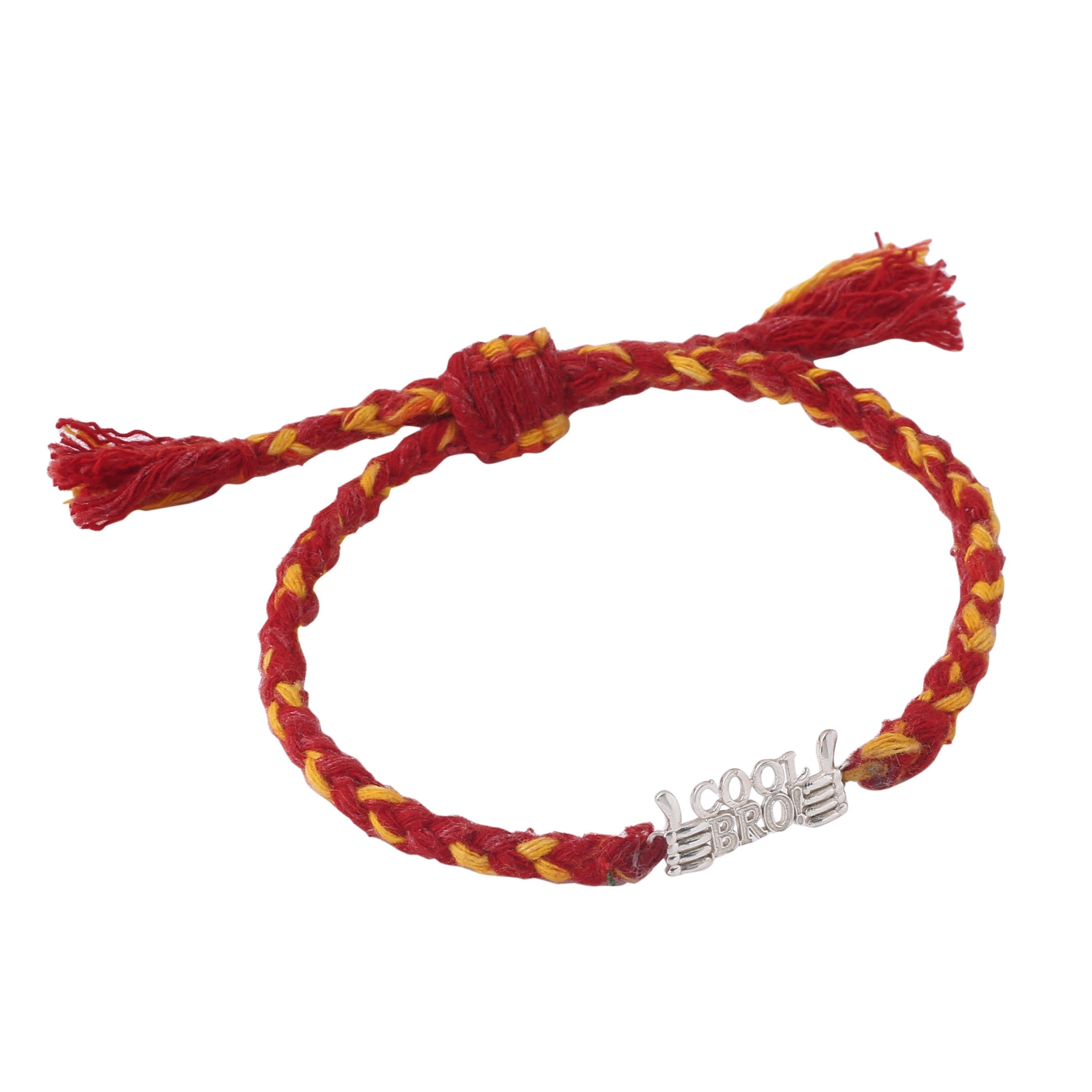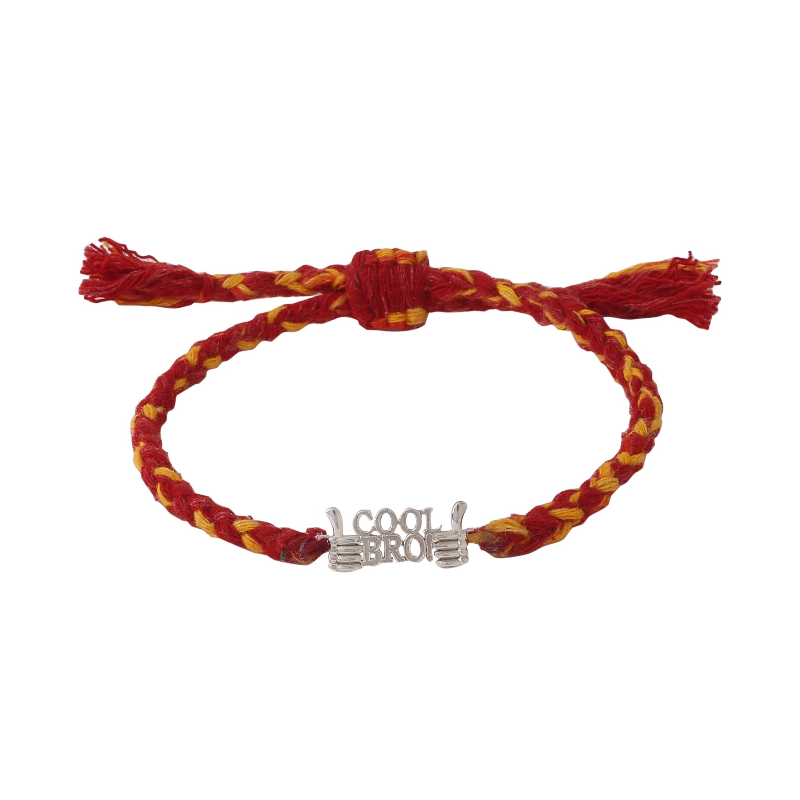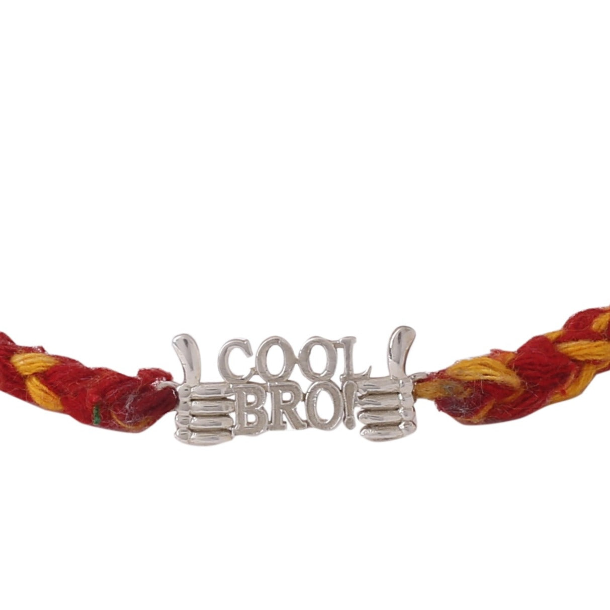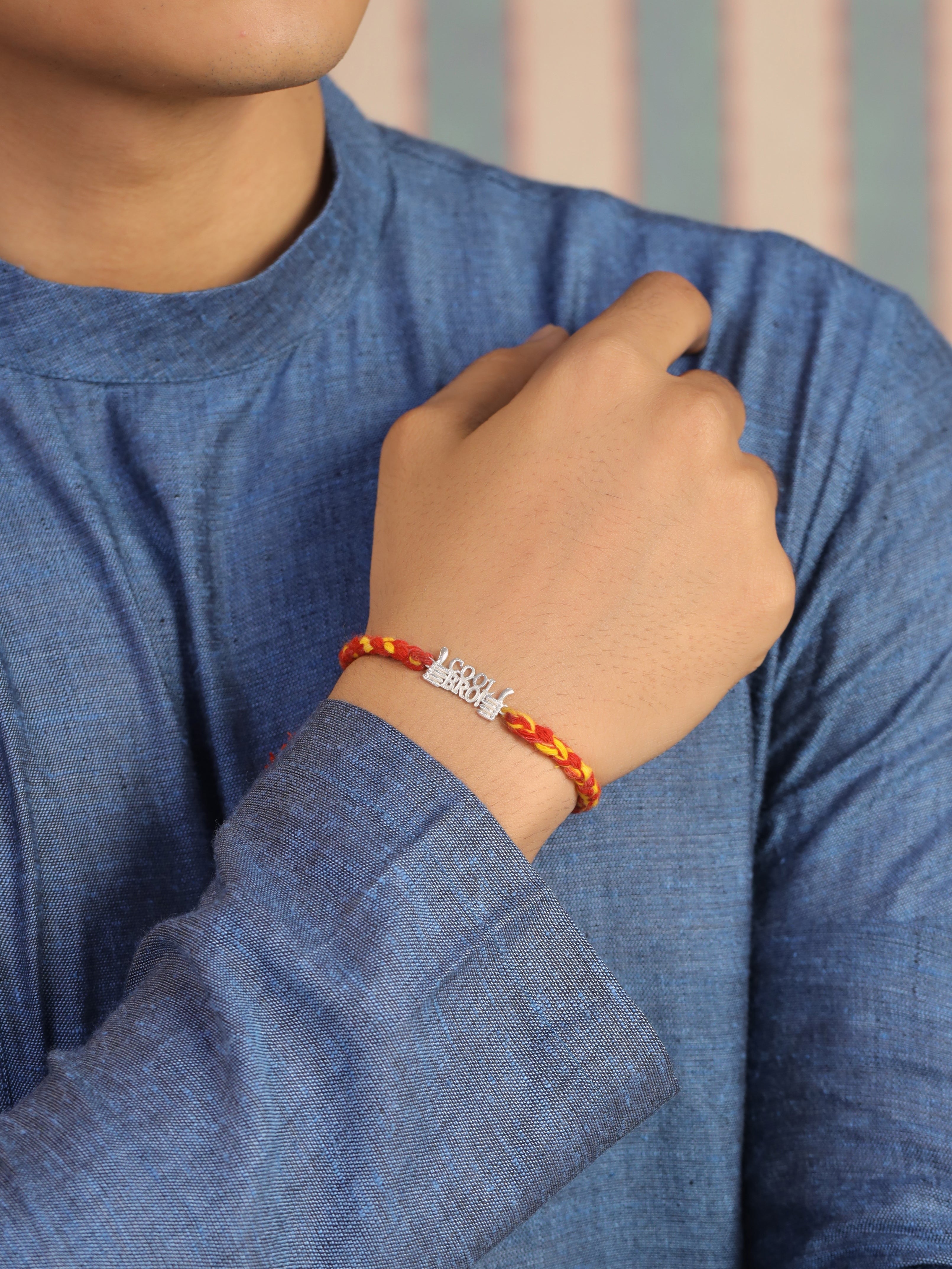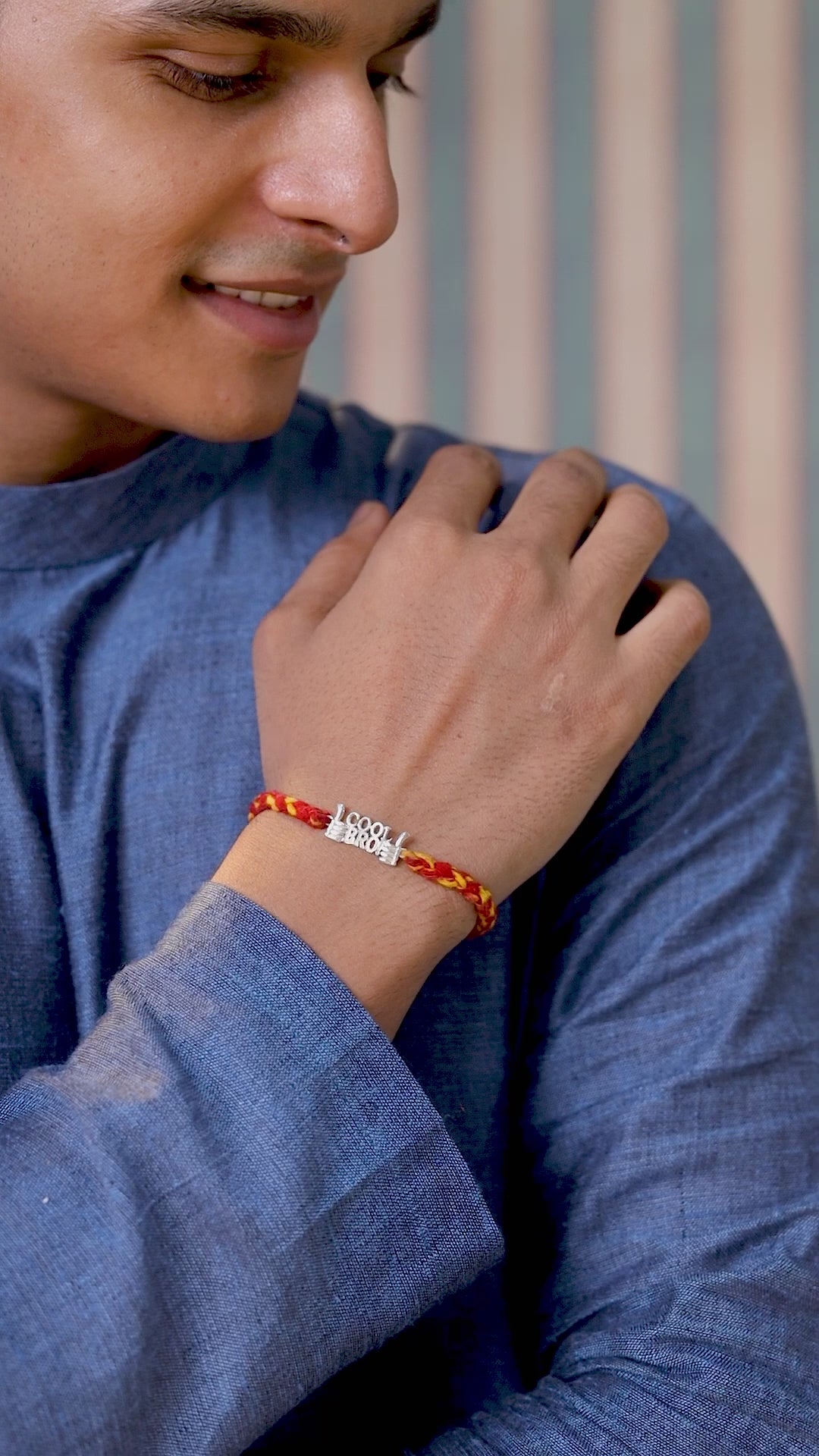 The cool bond between siblings can be rightly celebrated with our Thumbs Up Bond Rakhi. Made with pure 925 sterling silver, this unique Rakhi features a "Cool Bro" charm with a thumbs-up symbol, representing the fun and camaraderie shared between siblings. The sacred Moli thread intertwines with the silver bracelet, symbolizing the enduring love, protection, and goodness of the Rakhi festival. Strengthen your bond with this stylish and playful Rakhi.