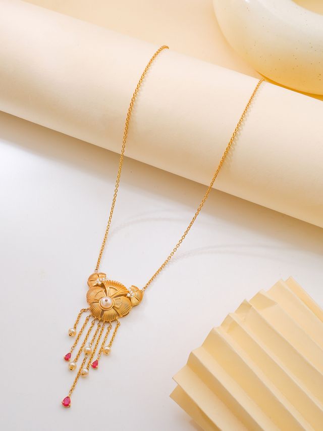 Inspired by the delicate folds of frills and in an effort to create something truly spectacular- this intricate design resembling a floral arrangement in a teddy bear design is just the thing you need to be the star of the evening. It’s got pearls, rubies and moissanites- enough to steal your heart and then some!