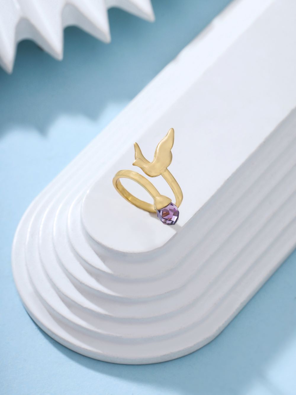 Designed to feel like a gentle hug for your finger, this open-concept, adjustable gold-plated ring features a stunning amethyst centerpiece. A symbol of calm, healing, and inner balance, amethyst has long been cherished for its ability to bring clarity and strength. This ring is more than just jewelry—it’s a wearable token of serenity, protection, and well-being, perfect for everyday elegance.