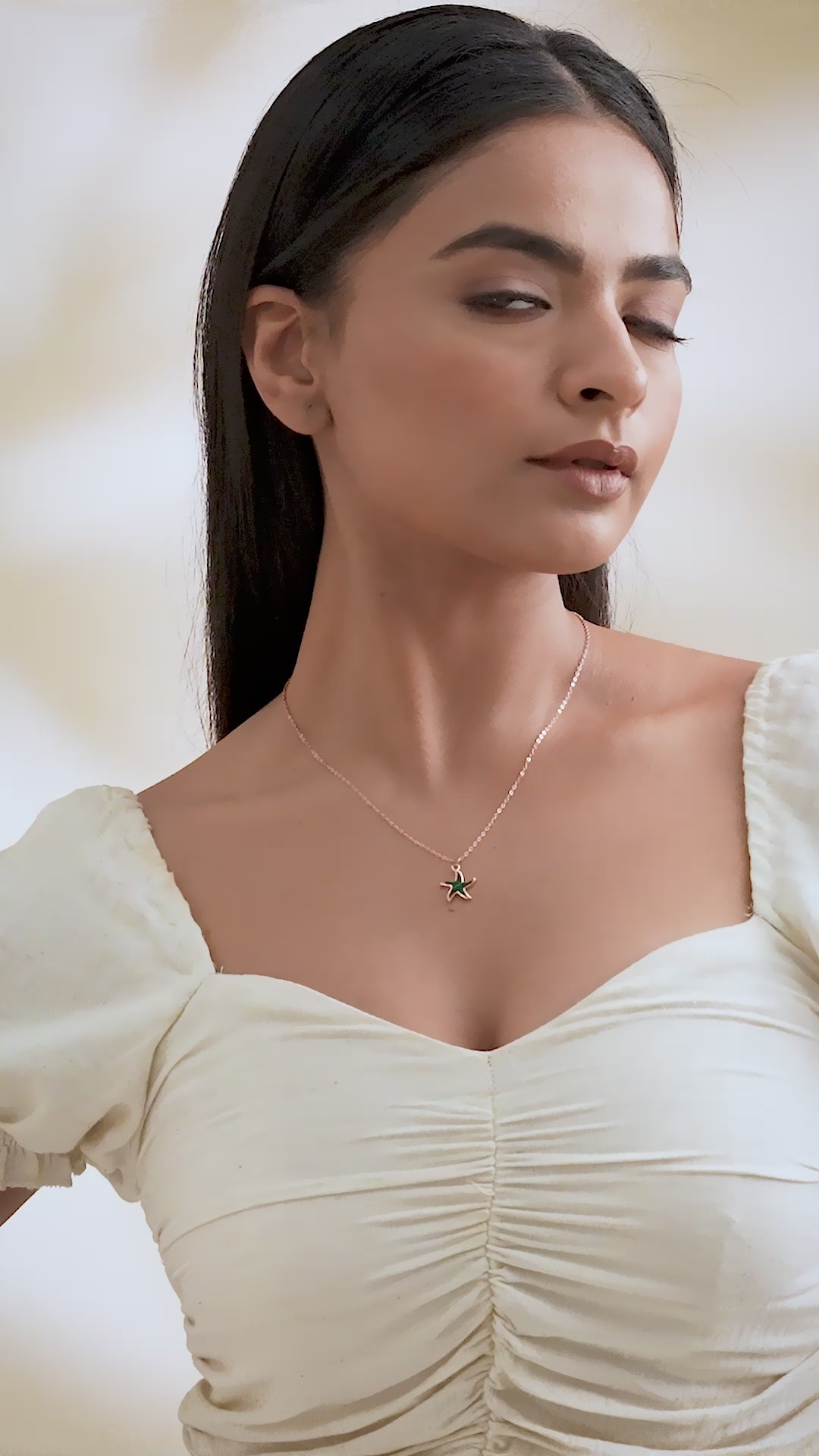 Effortlessly stylish, this rose gold and silver rhodium-plated starfish pendant is a subtle nod to coastal charm. Delicate yet playful, it pairs beautifully with any look, adding a touch of seaside elegance to your everyday style.