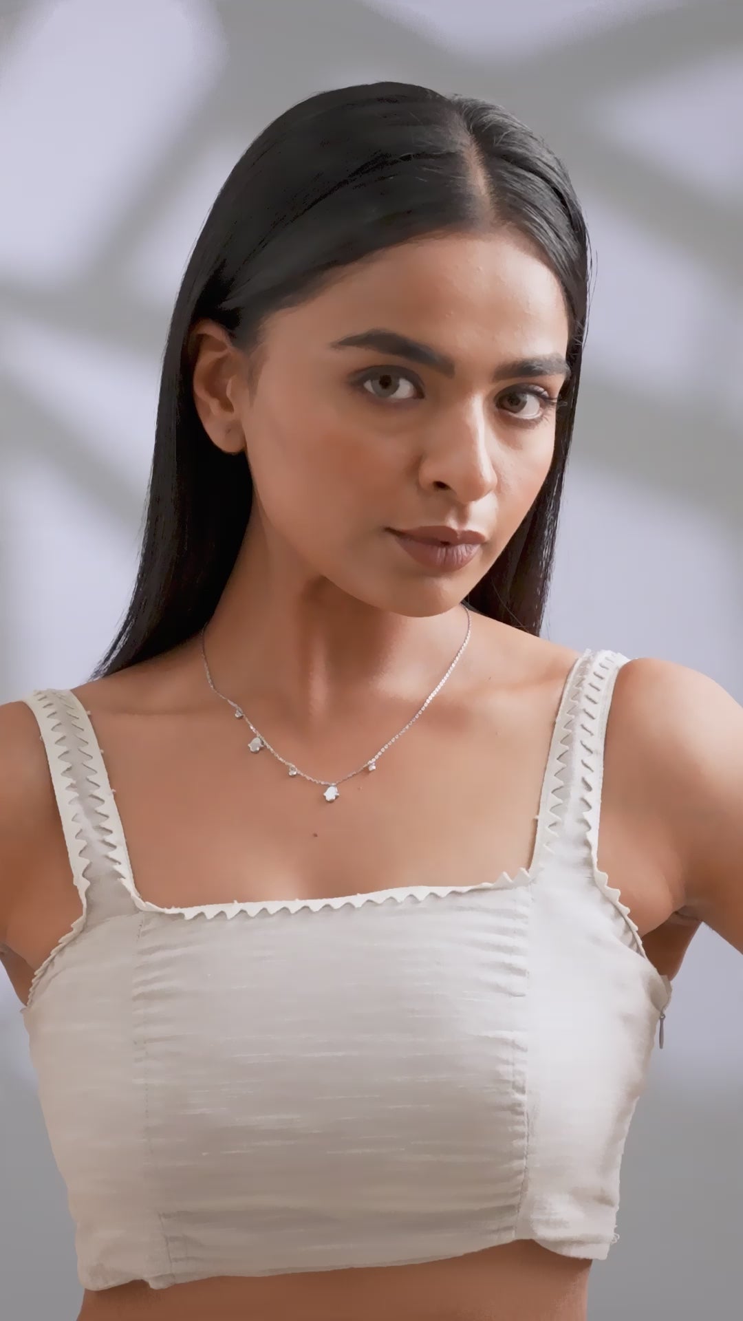 A delicate balance of charm and grace, this necklace is a tribute to understated beauty. A fine silver chain is adorned with nature-inspired charms shaped like elegant trees, interspersed with small white stones. The organic silhouettes and polished finish evoke a serene, earthy allure, making this piece a perfect blend of whimsy and sophistication.