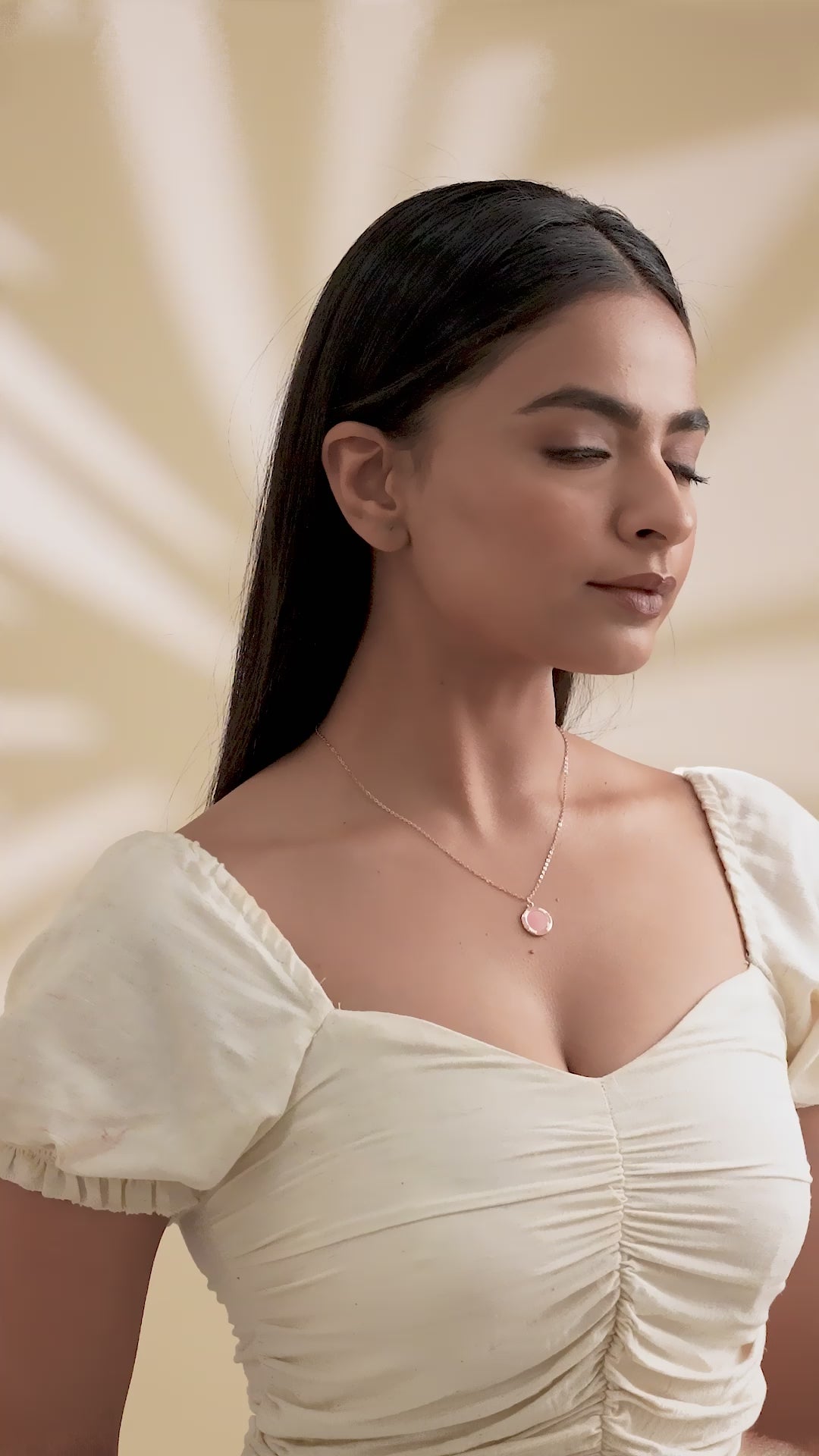 Framed in a striking silver rhodium finish, the soft pink enamel inlay adds a delicate touch of color, catching the light with every movement. Inspired by the charm of casino chips, this necklace is a playful yet sophisticated piece—perfect for those who love to take chances and shine while doing it.