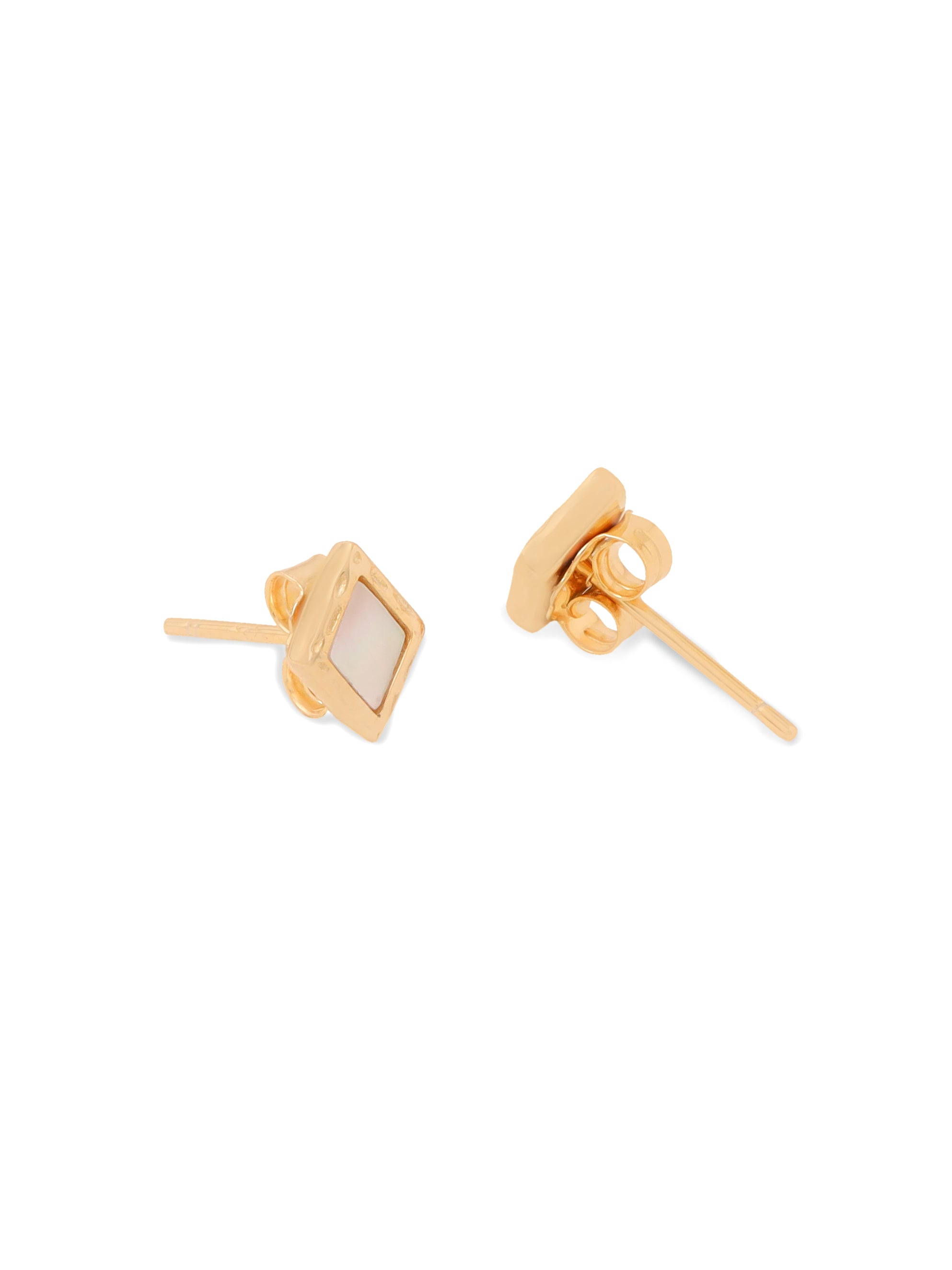 Syra 24k Gold Diamond-Shaped 925 Sterling Silver Mother of Pearl Stud Earrings For Women