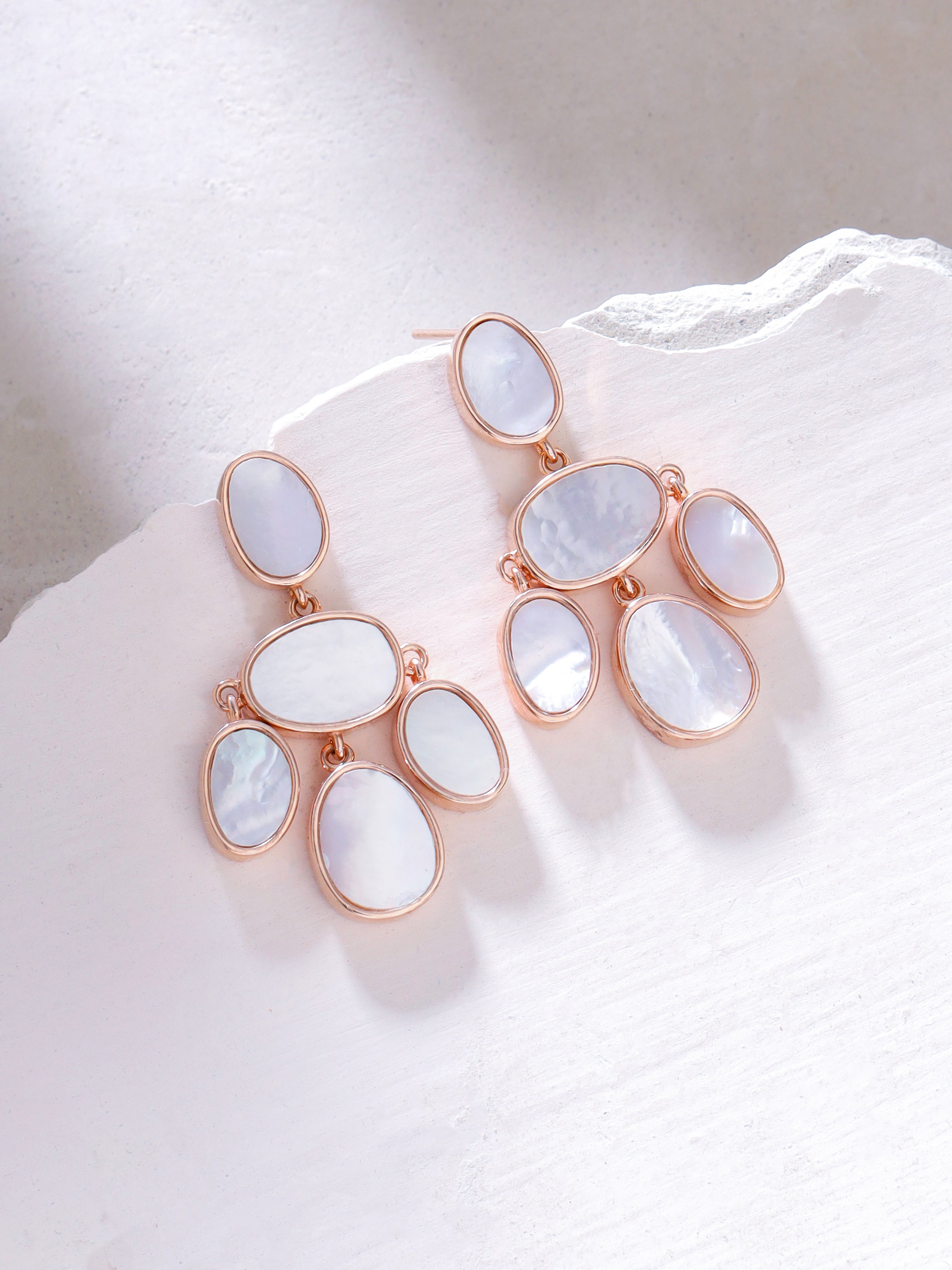 Syra Rose Gold Mother of Pearl Oval Disc Earrings in 925 Sterling Silver For Women