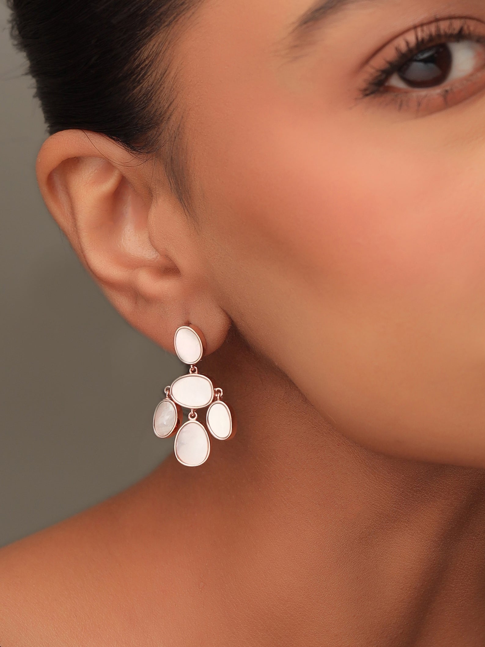 The Syra Collection Rose Gold Mother of Pearl Oval Disc Earrings seamlessly combine modern design with timeless luxury, perfect for elevating everyday wear.